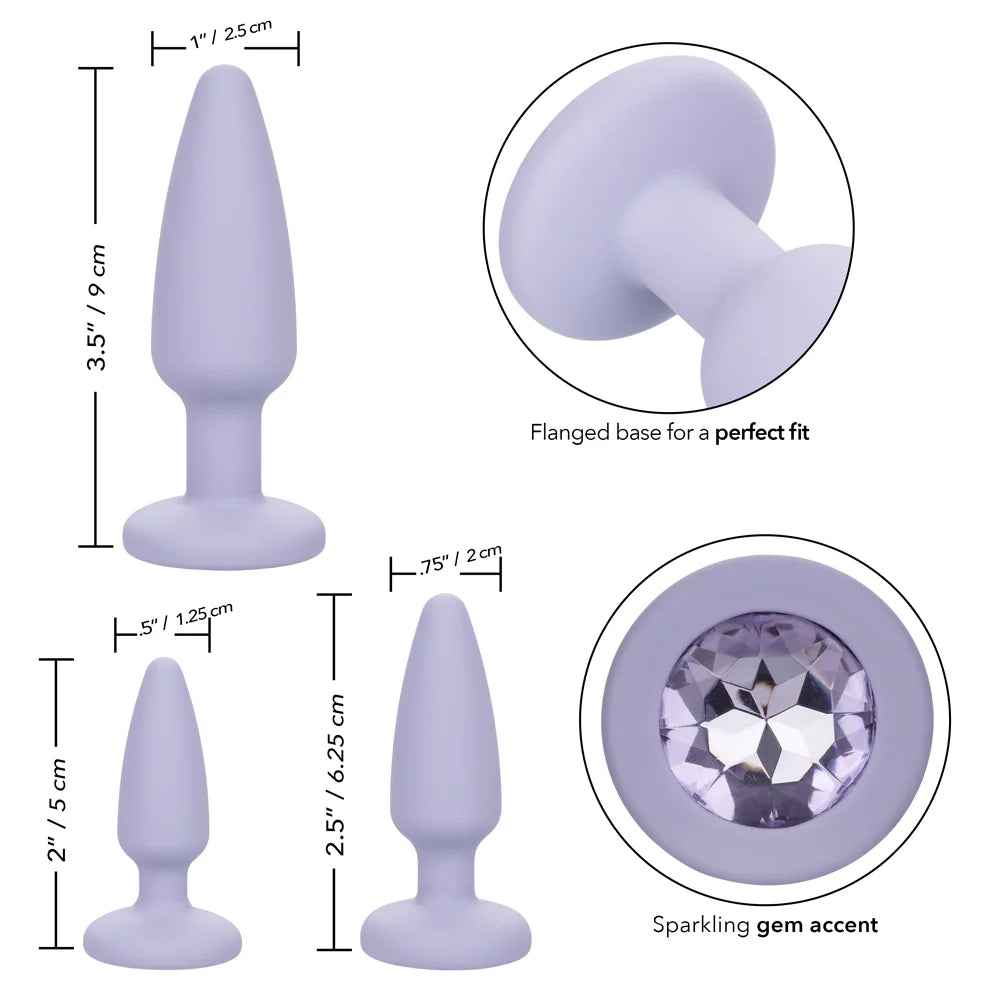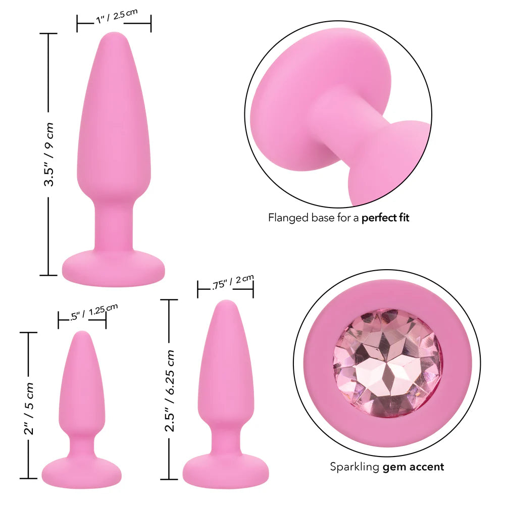 Progressive training is key to comfortable and enjoyable anal play. Each plug in this kit gradually increases in length and girth, allowing you to advance at your own pace while maintaining safety and control. The gem-adorned base not only adds visual appeal but also supports effortless insertion, comfortable wear, and easy removal.