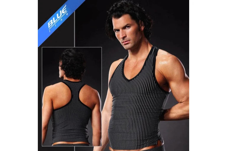 The Blue Line Men's Black & White Pin Stripe V-Neck Singlet delivers contemporary edge with its striking vertical stripes and flattering deep V-neckline. Crafted from a soft polyester-spandex blend, this piece offers breathable comfort and subtle stretch that adapts to your movement. Whether worn layered under a jacket for evening sophistication or solo for confident style, it's designed to make an impact. The streamlined cut elongates your silhouette while the premium fabric keeps you cool without compromising on that sharp, polished look.
