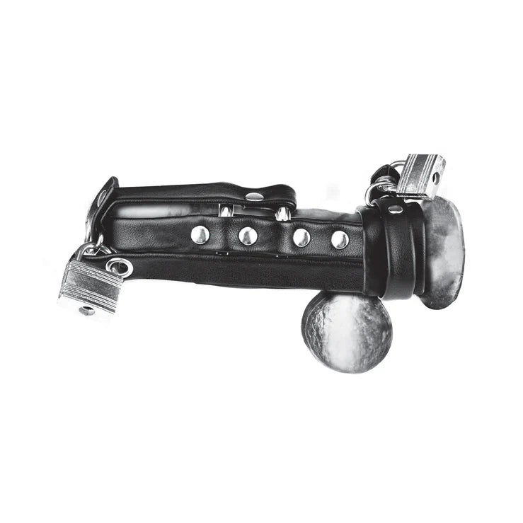 Insert the penis through both rings and secure the lock at the top. Then, wrap the ball strap around the base and lock it firmly in place for total confinement and heightened arousal.