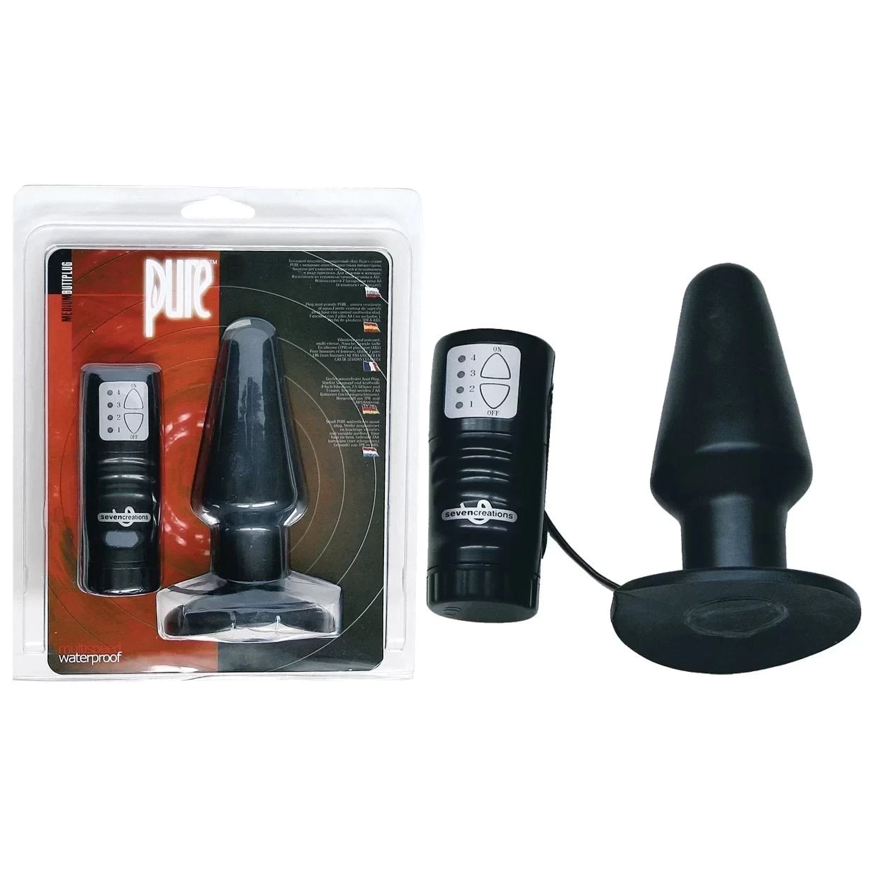 Get ready to turn up the good vibes with the Seven Creations Pure Vibrating Butt Plug Large with Attached Remote—designed for smooth comfort and easy, no-fuss control. With everything in one piece, you can focus on the fun without any distractions.