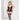 This floral lace and contrast microfiber cami set includes a keyhole front detail and adjustable straps. It features underwire for support and has a hook and eye back with gold hardware. The set also comes with removable garters and a matching panty.