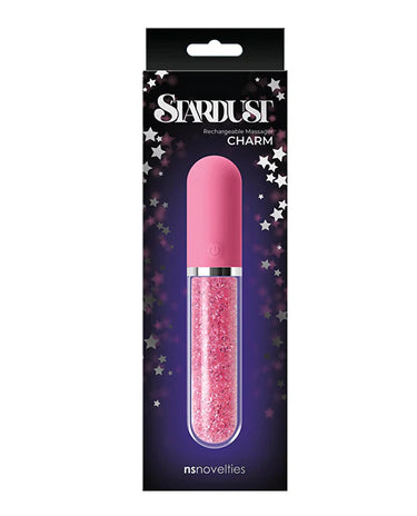 Dive into celestial pleasure with Stardust Charm Pink. This playful toy sparkles with Swarovski crystals and borosilicate glass, delivering cosmic vibrations that'll send you to the stars. Crafted from body-safe platinum silicone, this rechargeable delight works with any lube you fancy. Available in various hues and dimensions, Stardust is your ticket to twinkling bliss. Reach for the stars and let your fantasies take flight!