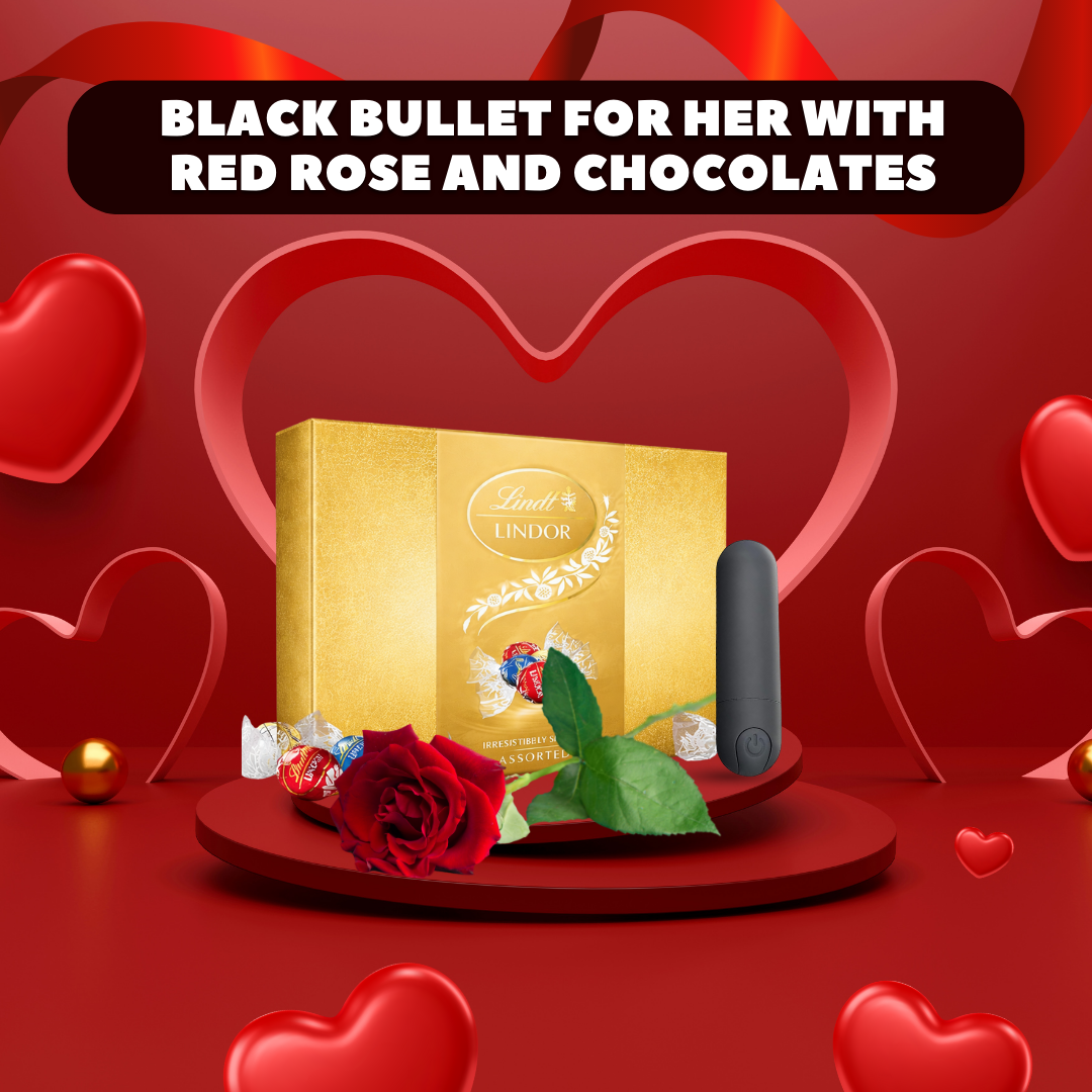 Black Bullet for Her with Red Rose And Chocolates