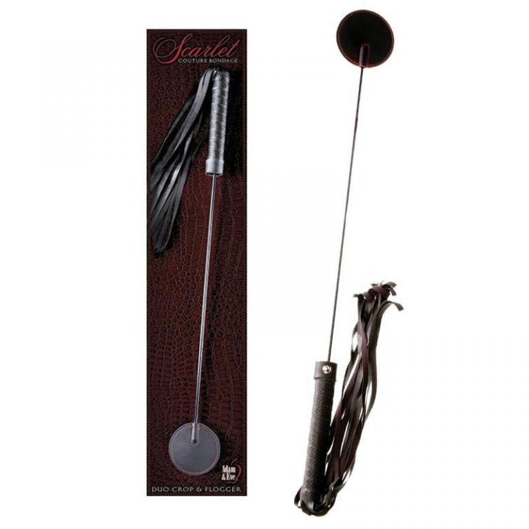 Easily switch between a riding crop and a flogger with just a quick flick of your wrist in this playful, dual-ended delight! One side features a 3-inch wide riding crop perfect for swatting, while the other flaunts a 1-inch wide flogger designed for teasing or whipping. The crop stretches 24.75 inches from tip to the bottom of the vegan leather handle, and the flogger measures 19 inches long, offering versatile fun at your fingertips.