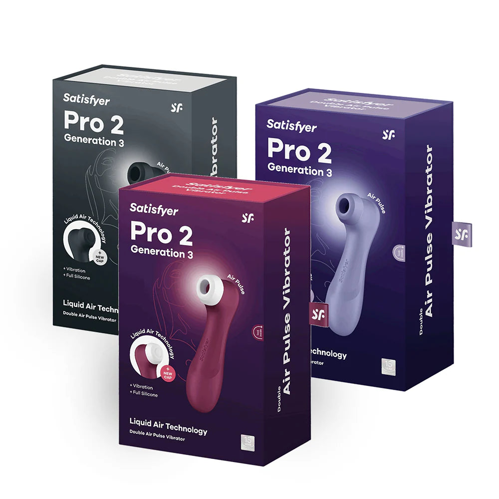 The Pro 2 Generation 3 is the latest edition of Satisfyer's iconic Air Pulse pleaser, now also with vibration and innovative Liquid Air Technology which creates a sensation like the sensual surge of pulsing water. With a smooth, silky silicone finish and a weighted head for ergonomic handling, the Pro 2 Gen 3 delivers the intense orgasms you know and love. But now, you’ll be flooded with the pleasure of a tapping touch as the air pressure waves arouse your clitoris through a thinly sheathed cap. Easily steer your journey through the two independent motors for vibration and air-pulse. With the simple panel button controls crest across through 11 pressure wave and 12 vibration options. Enjoy the rush!