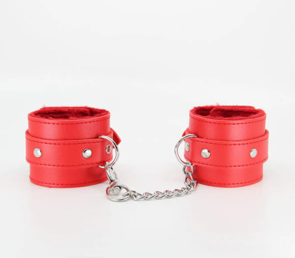 Lined with faux fur and crafted from leatherette, these wrist restraints come with a detachable chain join and are available in four colours.