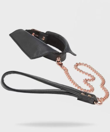 Handcrafted double-stitched Chelsea collar with a detachable leash.