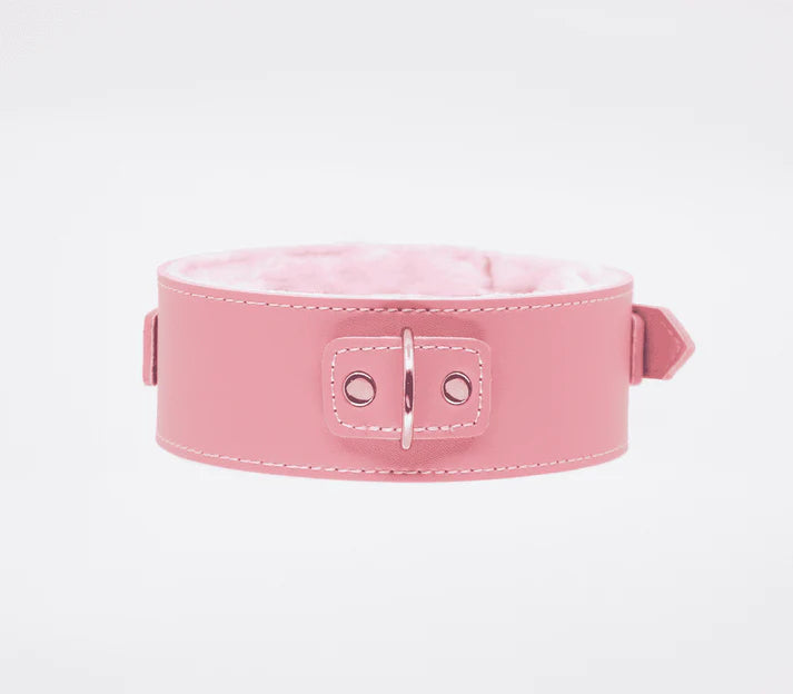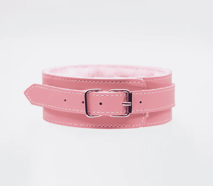 Slip into something naughty with this flirty faux leather collar, lined with soft faux fur for a touch of luxury against your skin. Featuring a 1” center dee and buckle closure with keeper, it offers an adjustable fit from 39 cm to 47 cm (5 cm wide x 55 cm long) and comes with a 122 cm lead for all your playful adventures. Available in sultry black, fiery red, flirty pink, and vibrant purple, and perfectly paired with matching pieces—because why stop at just the collar? Comes tagged and ready to tease!
