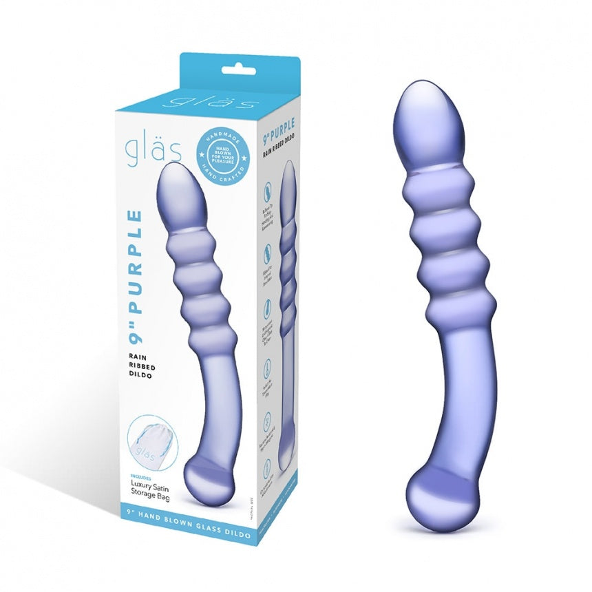 Introducing the Purple Rain Ribbed Dildo – a stunning glass masterpiece that's as beautiful as it is pleasurable. This handcrafted gem features a captivating translucent purple hue and strategically placed ribbing that delivers exquisite sensations with every movement. The curved tip targets your sweet spots with precision, while the ergonomic handle gives you complete control whether flying solo or with a partner. Crafted from premium tempered glass, it's fracture-resistant, hypoallergenic, and beautifully nonporous for effortless cleaning. Love temperature play? This toy retains heat and cold for thrilling new experiences. Compatible with all lubricants and built to last through countless adventures. At 7 inches insertable length with a 1.375-inch diameter, it's the perfect size for maximum pleasure and easy maneuvering. Your collection just got an upgrade!