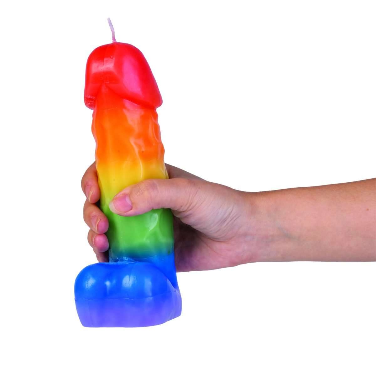 Celebrate your playful side and pride with this vibrant Rainbow Willy Candle!