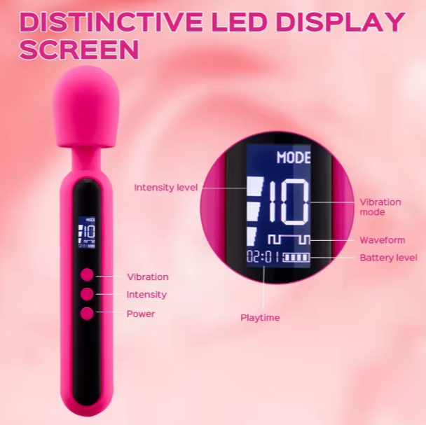 Silicone Wand Massage Vibrator With Digital Screen